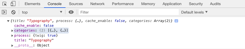 To display variables before a page is returned by Grav or in case no page refresh occurs such as when using AJAX there is another alternative. By using a single line of Javascript any variable can be displayed in your browser's developer console, for example: