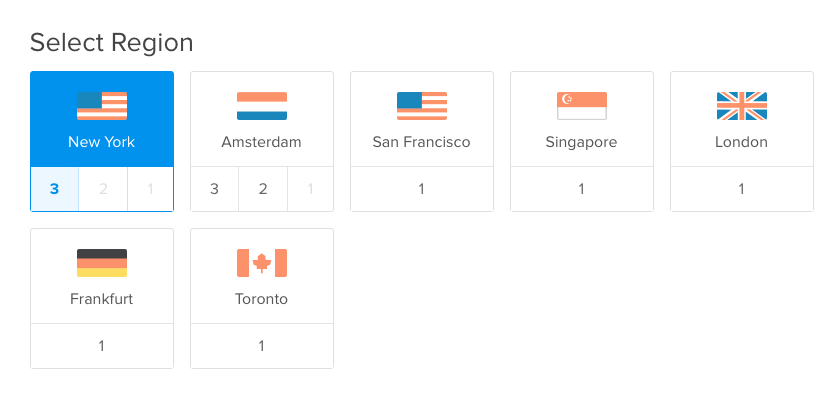 Next, select a Region where your VPS will be located. It's best to pick a region that is going to serve your target audience the best. If the server is for development purposes only, pick one that is located closest to you.