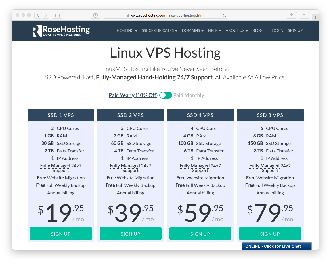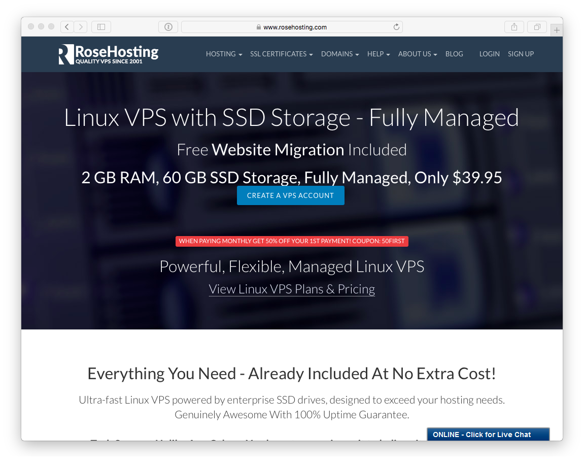 Back in 2001, RoseHosting was the first and only company in the world to offer commercial Linux virtual servers. Now they offer a wide range of Linux hosting packages, including Linux VPS powered by enterprise SSD Storage. All their hosting plans are fully managed and include free 24/7 support, so they can install and set up Grav for you for free.